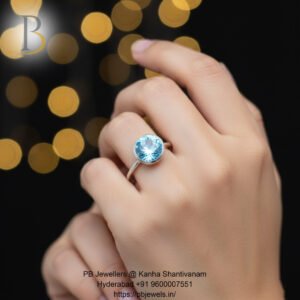 92.5 Silver Blue Topaz Solitaire Ring ✨