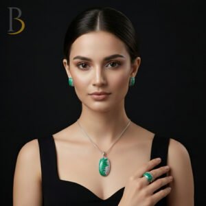 92.5 Silver Green Enamel Leaf Set ✨