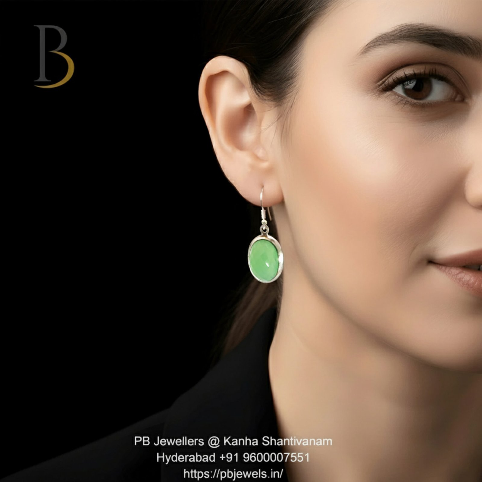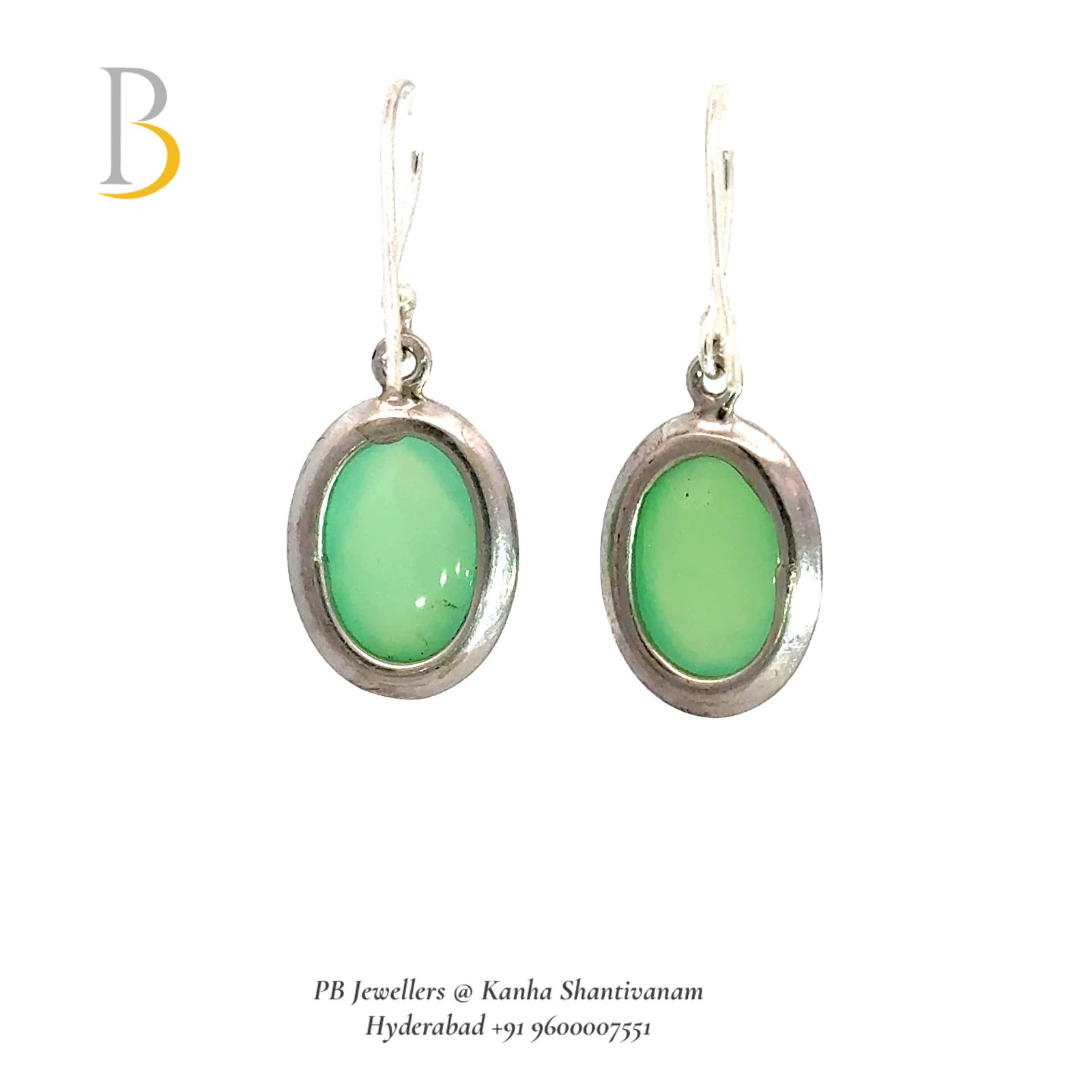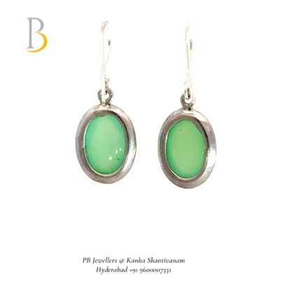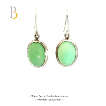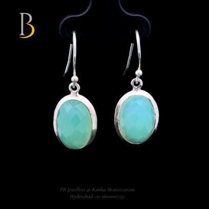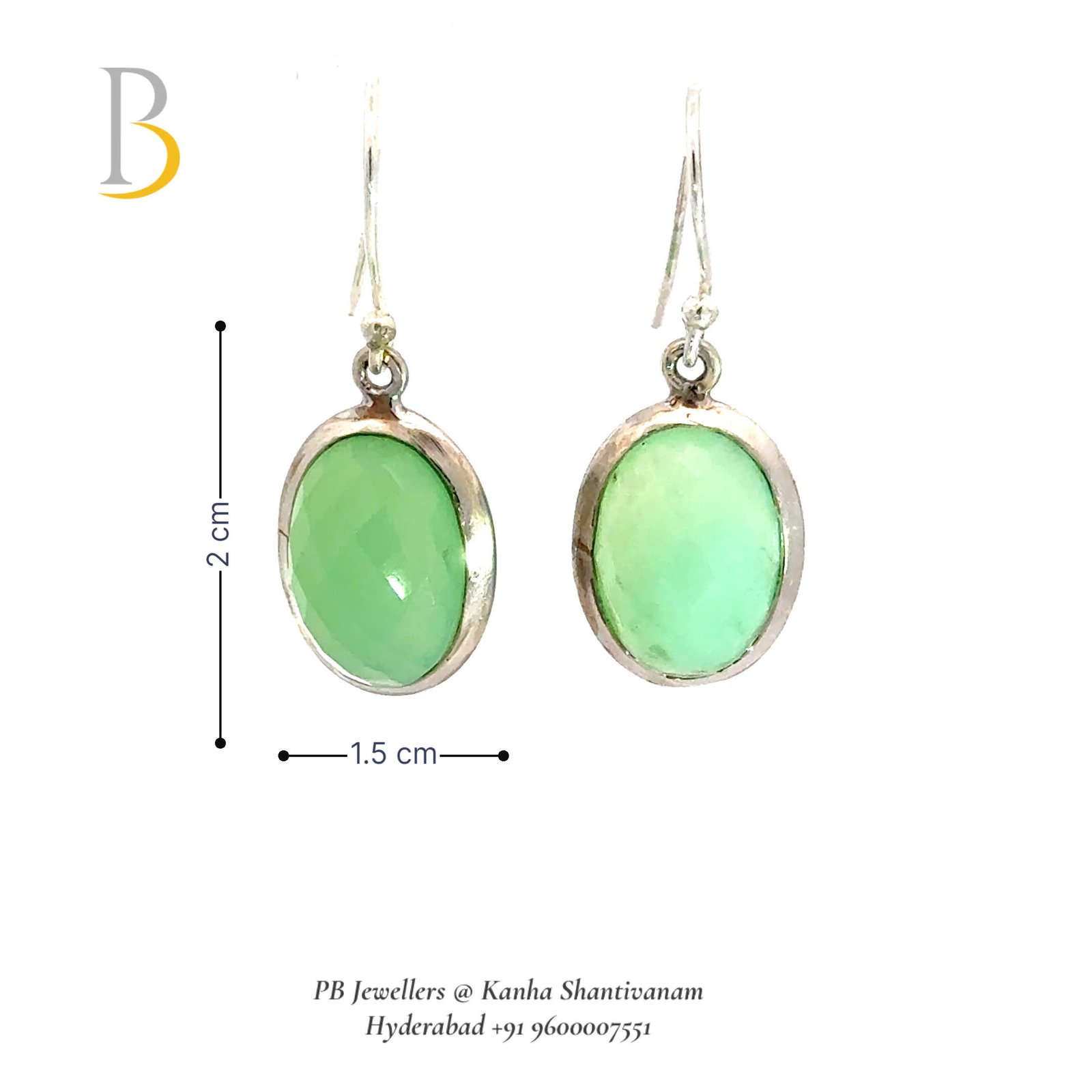 These 92.5 Silver Earrings with soothing green chalcedony radiate calm elegance — a perfect blend of natural serenity and modern charm.
