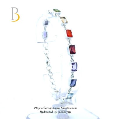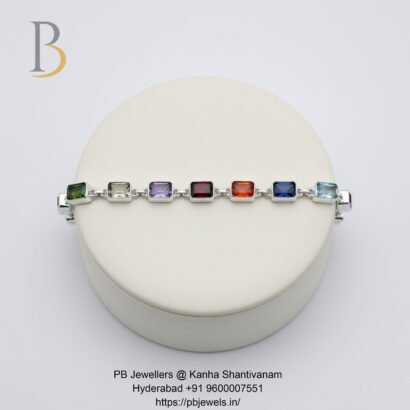A vibrant 92.5 silver bracelet featuring faceted multi-gemstones that enhance positivity, balance, and personal strength—perfect for elegant everyday wear.