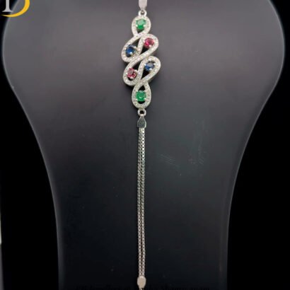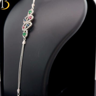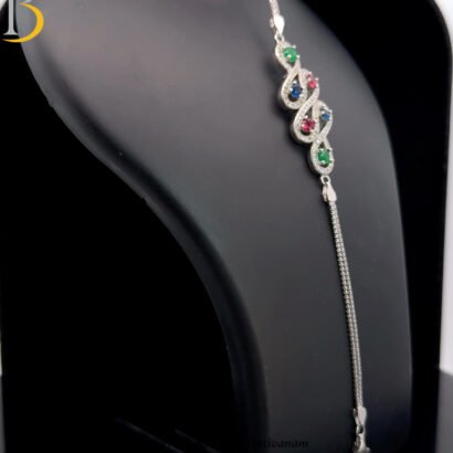 A delicate 92.5 sterling silver bracelet featuring an elegant infinity motif adorned with multicolor cubic zirconia. This refined design blends timeless symbolism with subtle sparkle, making it perfect for everyday elegance or meaningful gifting.