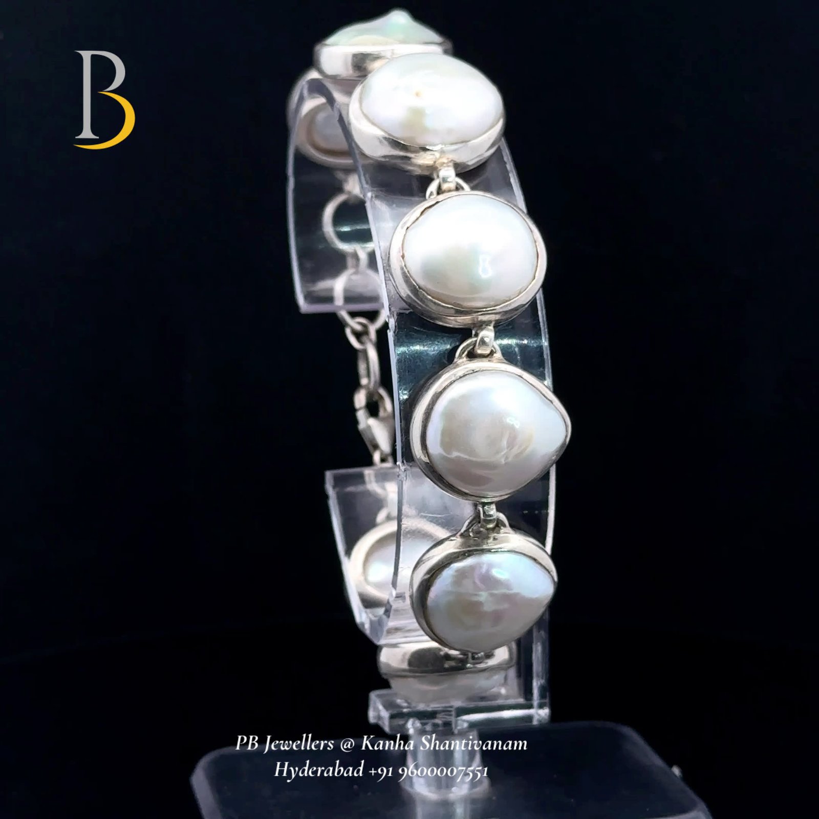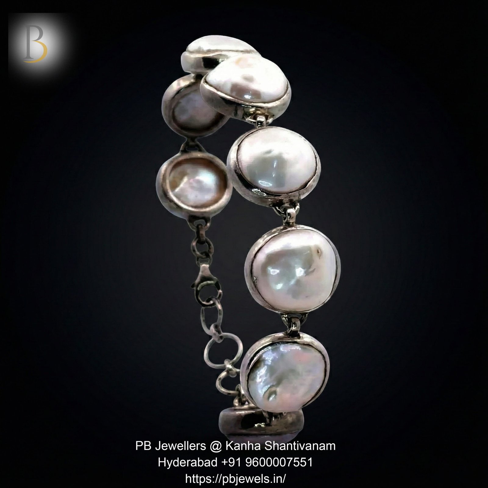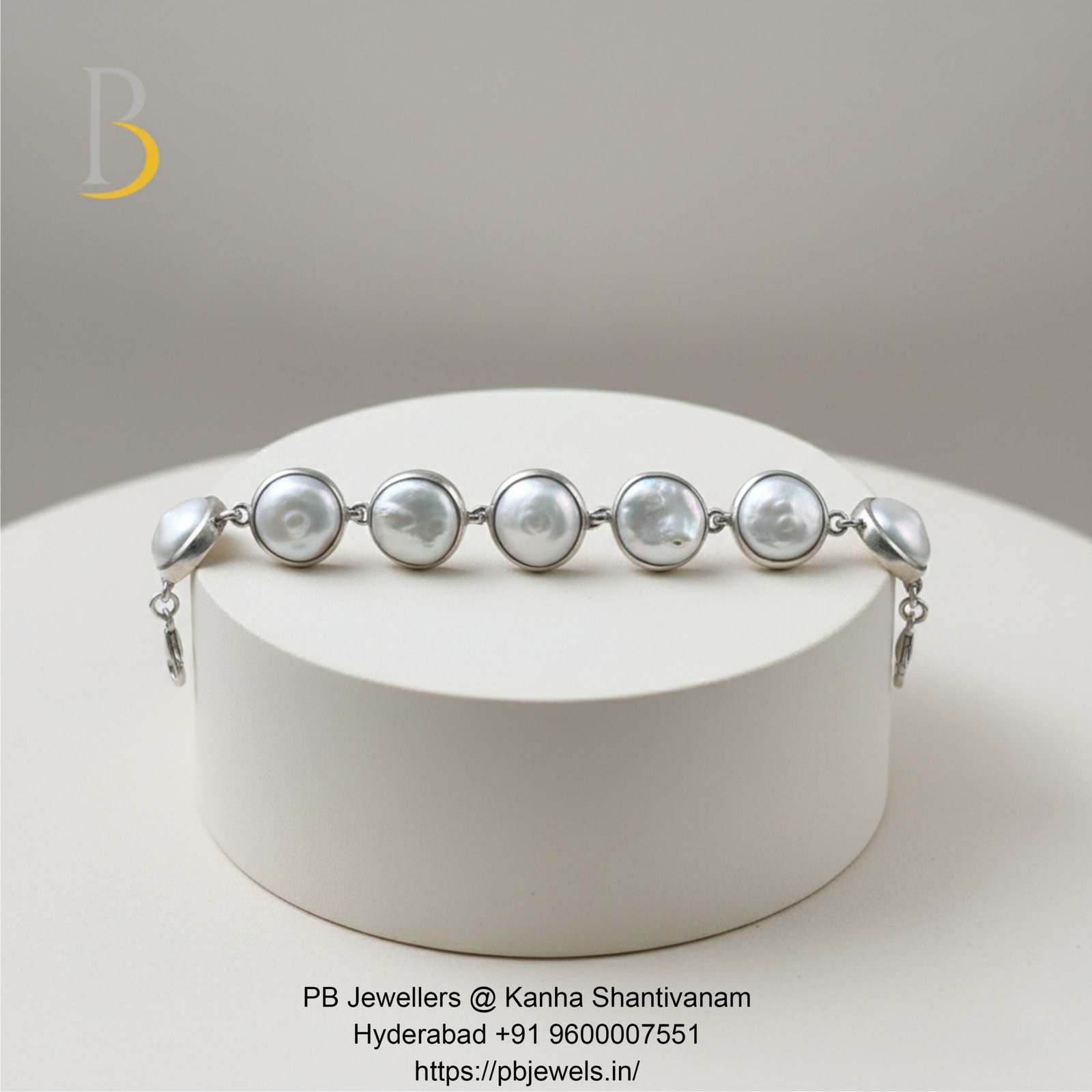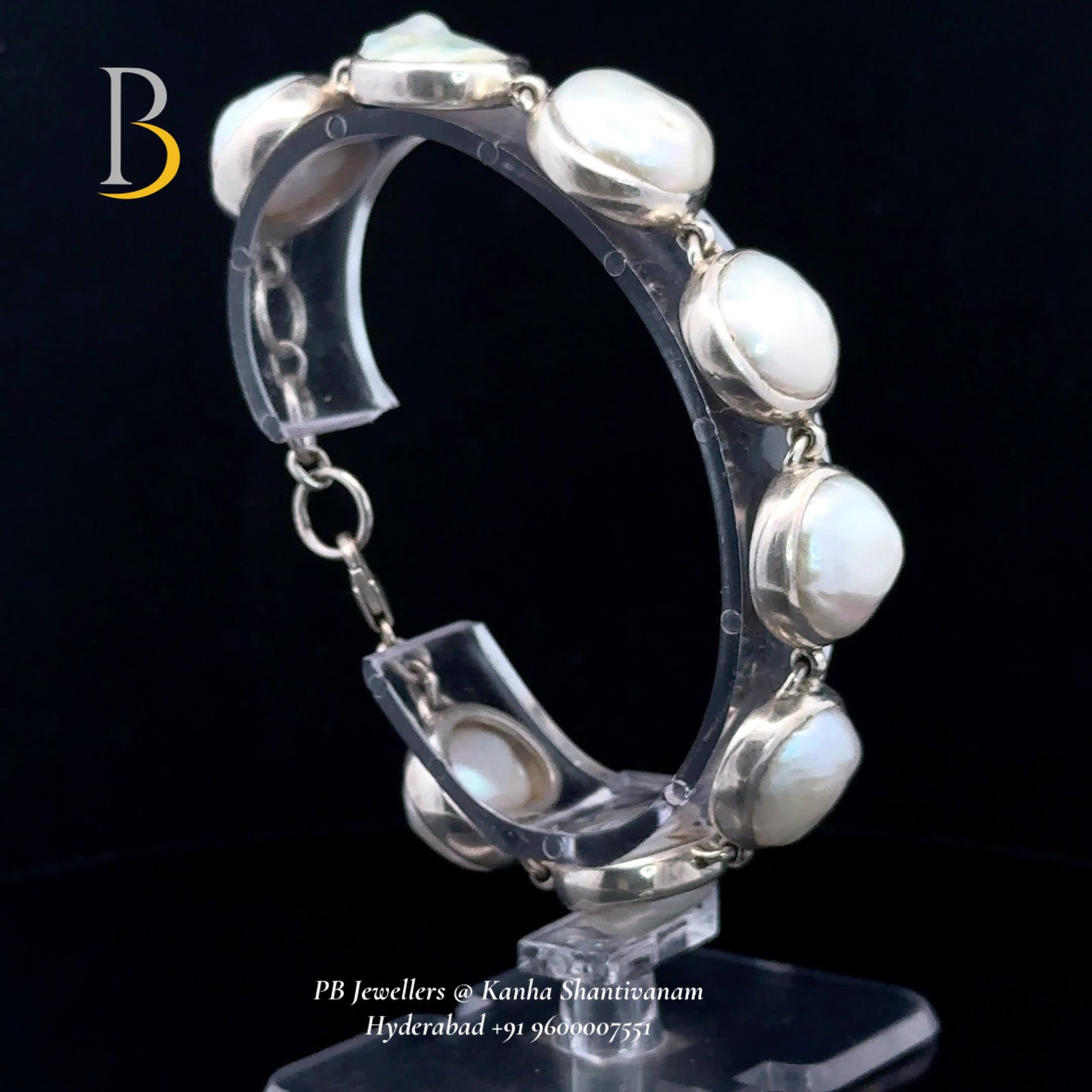 A classic 92.5 Silver Pearl Bracelet featuring natural lustrous pearls that radiate elegance and serenity. Perfect for daily wear or special occasions, adding timeless grace and soothing energy to your style.