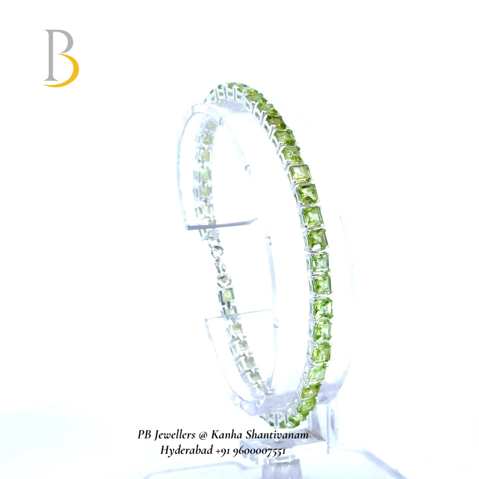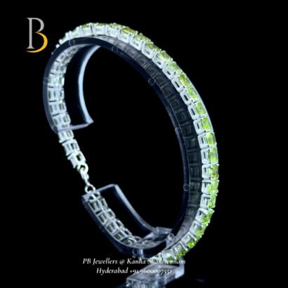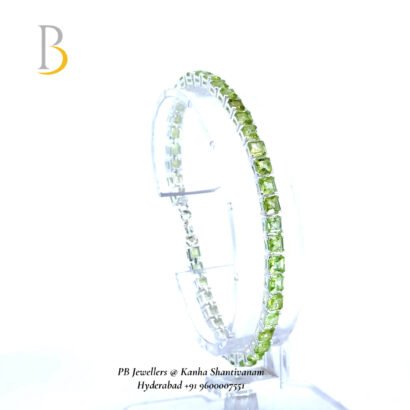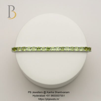 A sleek 92.5 sterling silver bracelet set with vibrant green peridot stones. Known as the stone of positivity and growth, its fresh glow adds elegance while uplifting the mind and spirit—perfect for daily wear and refined minimal styling.