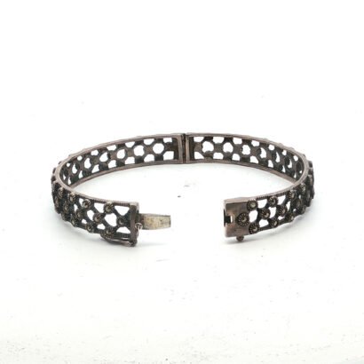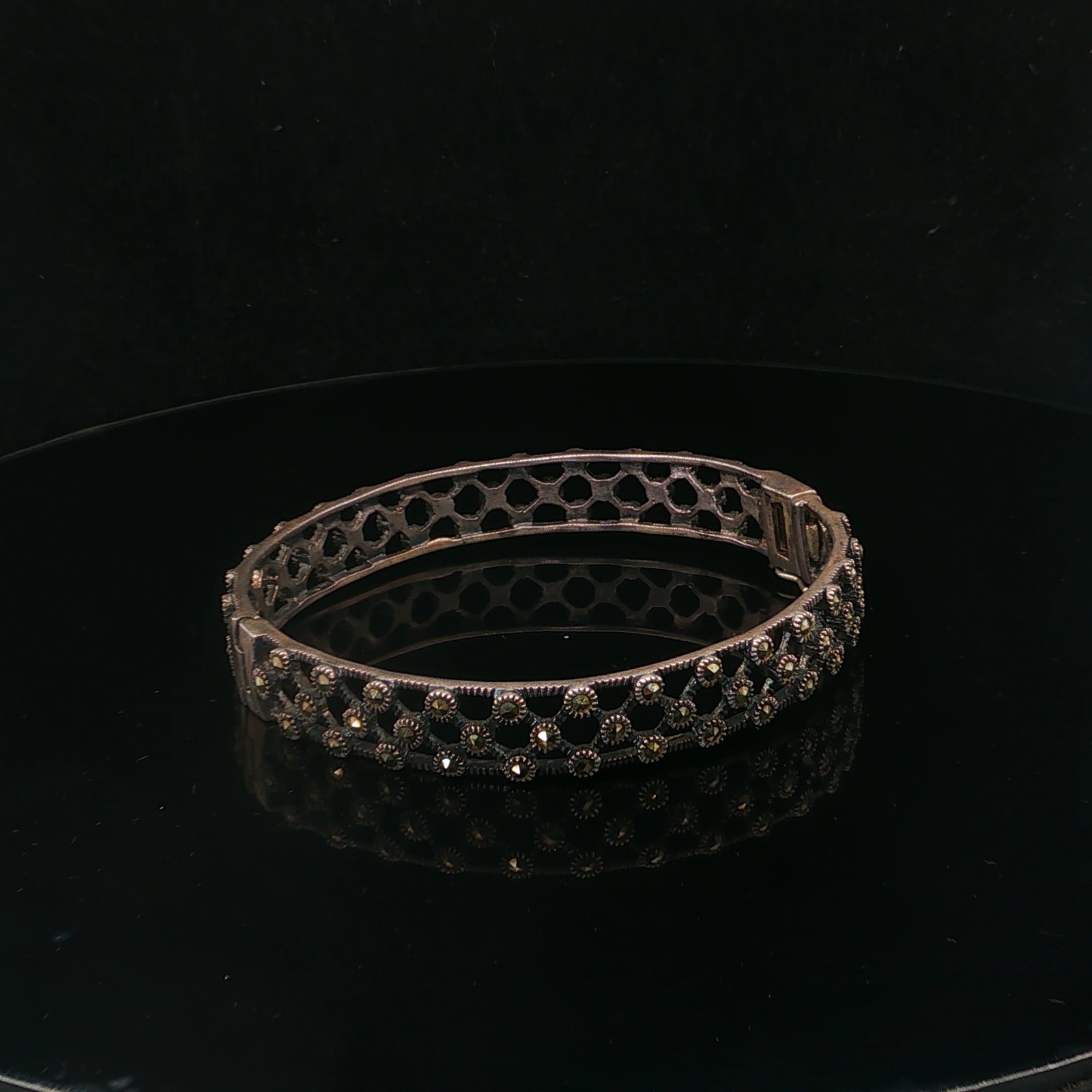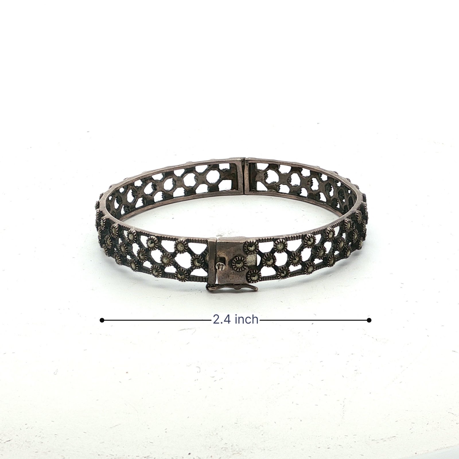 This elegant filigree bracelet features intricate vintage-style detailing crafted in solid 92.5 silver. Its antique finish adds timeless charm, making it a perfect statement accessory for both everyday wear and refined occasions.