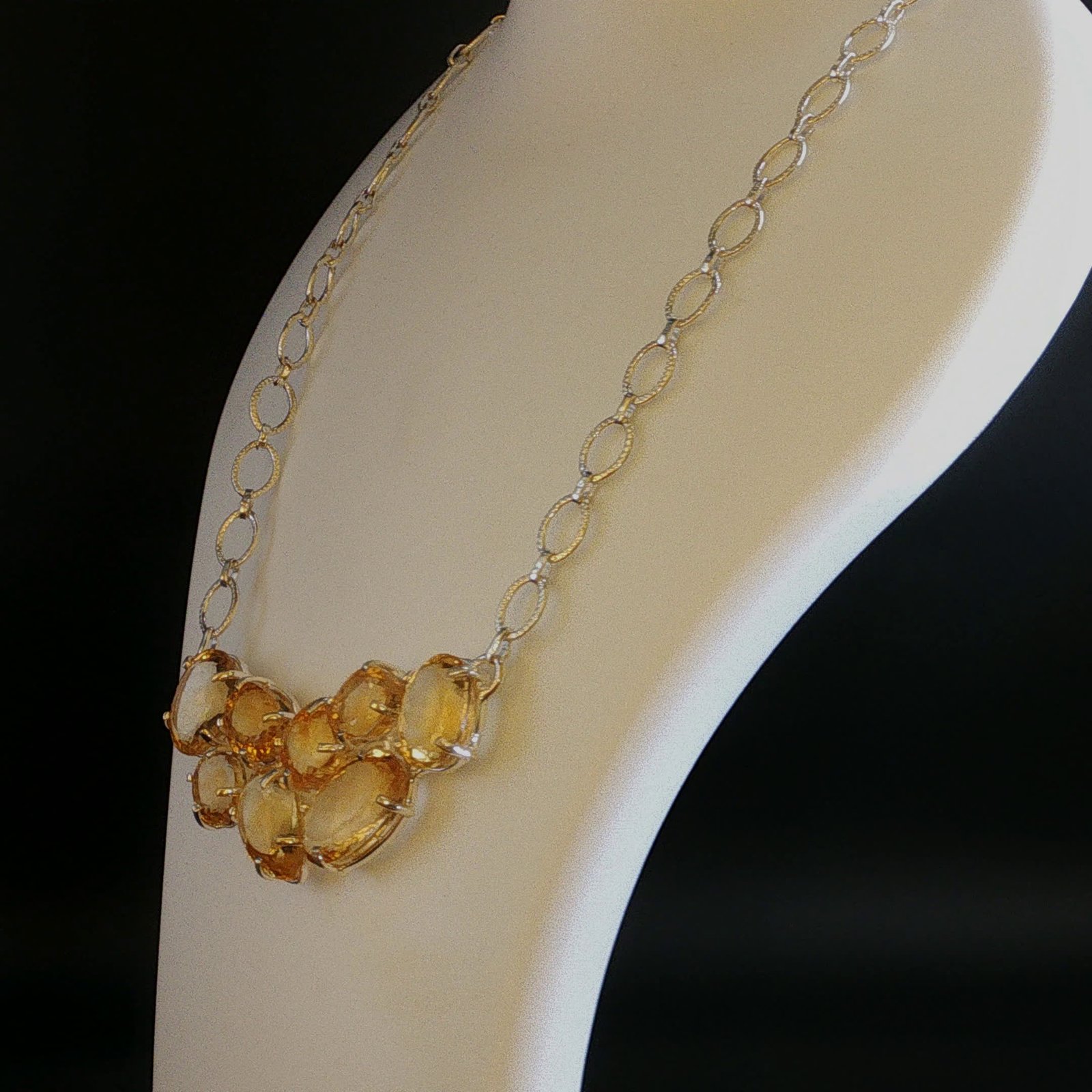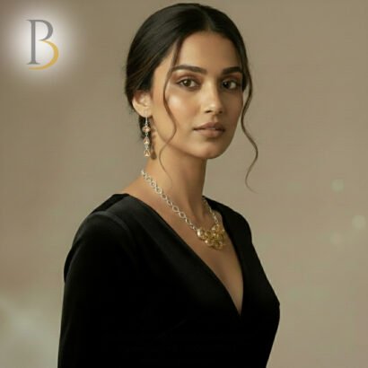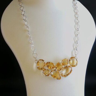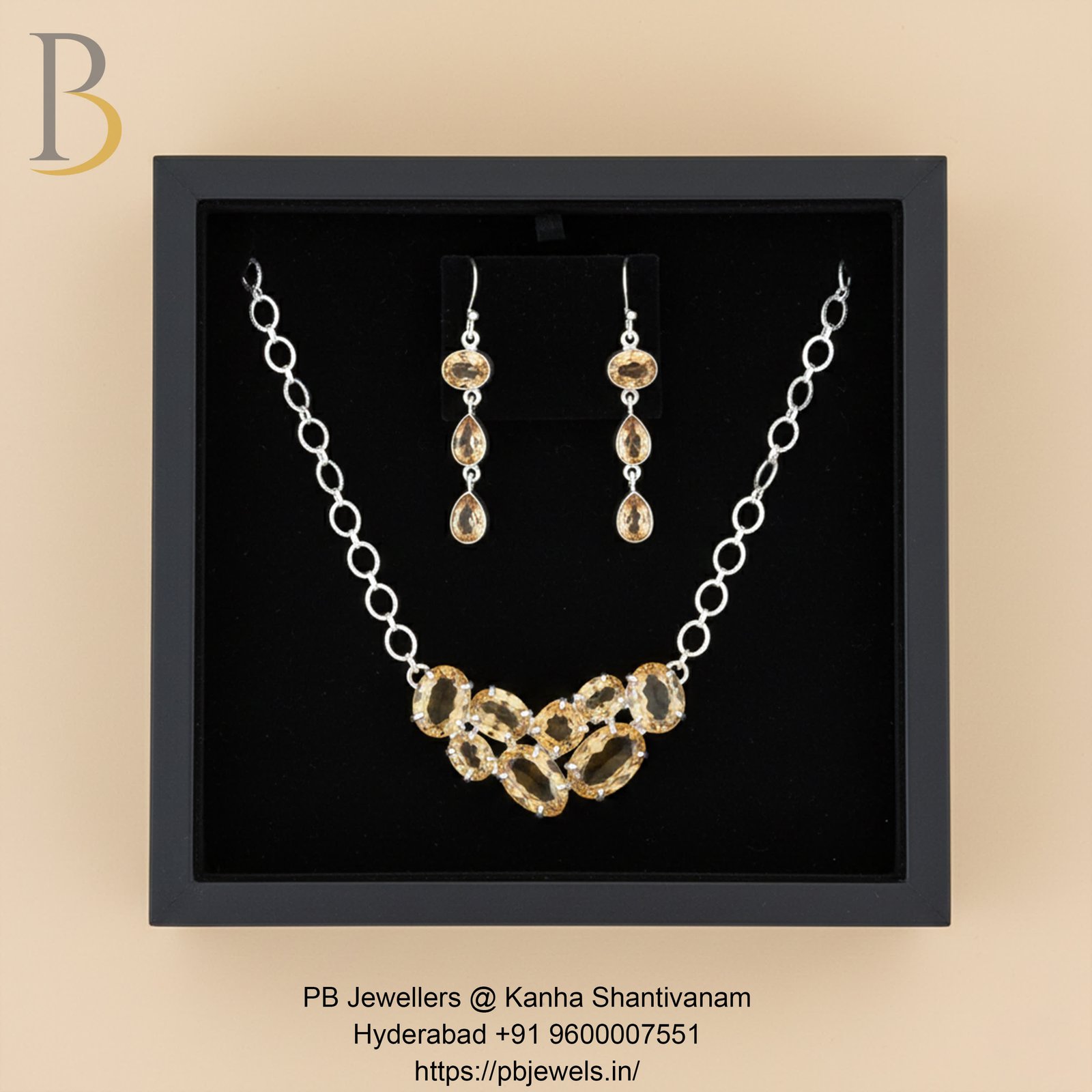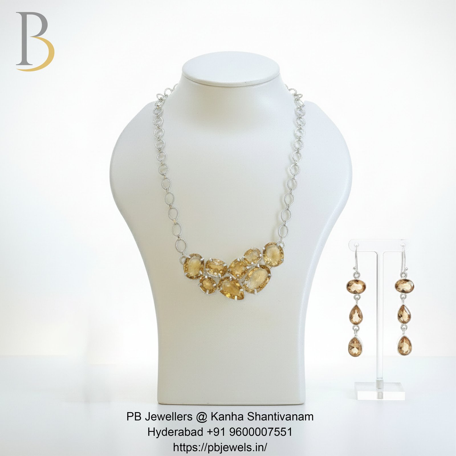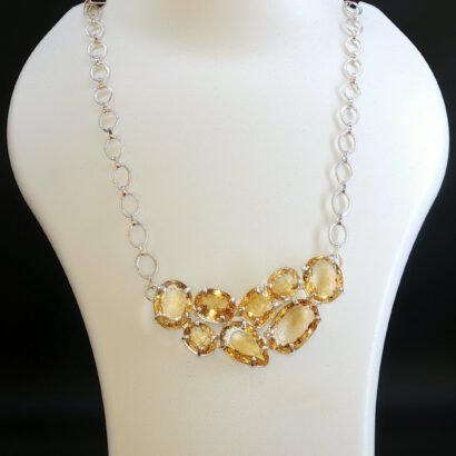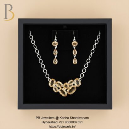 A graceful 92.5 sterling silver necklace set adorned with radiant citrine gemstones. The warm golden hues add elegance and charm, making it ideal for festive occasions, formal wear, or refined everyday styling with a touch of luxury.