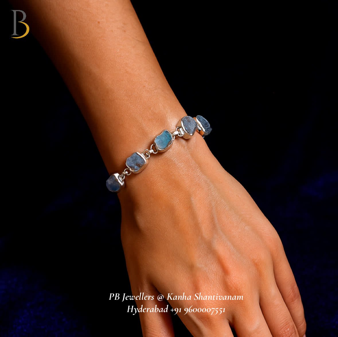 Embrace the calming elegance of the ocean with this Aquamarine Rough Cut Silver Bracelet. Made with authentic aquamarine stones set in high-quality sterling silver, this bracelet offers a natural, earthy feel with its unique rough stone design. The soft blue hues of aquamarine add a serene and refreshing touch to your jewelry collection, perfect for both everyday wear and special occasions.