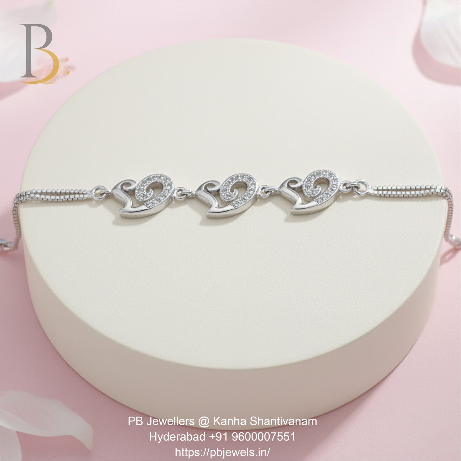 A sparkling 92.5 Silver CZ Heart Bracelet featuring triple heart motifs embellished with brilliant CZ stones. Elegant, radiant, and perfect for gifting or everyday charm.