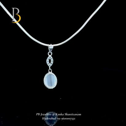 Elegant 92.5 sterling silver pendant featuring a luminous natural moonstone with a soft blue glow. Accented by delicate sparkle detailing, this timeless design adds grace and serenity to everyday wear or special occasions.