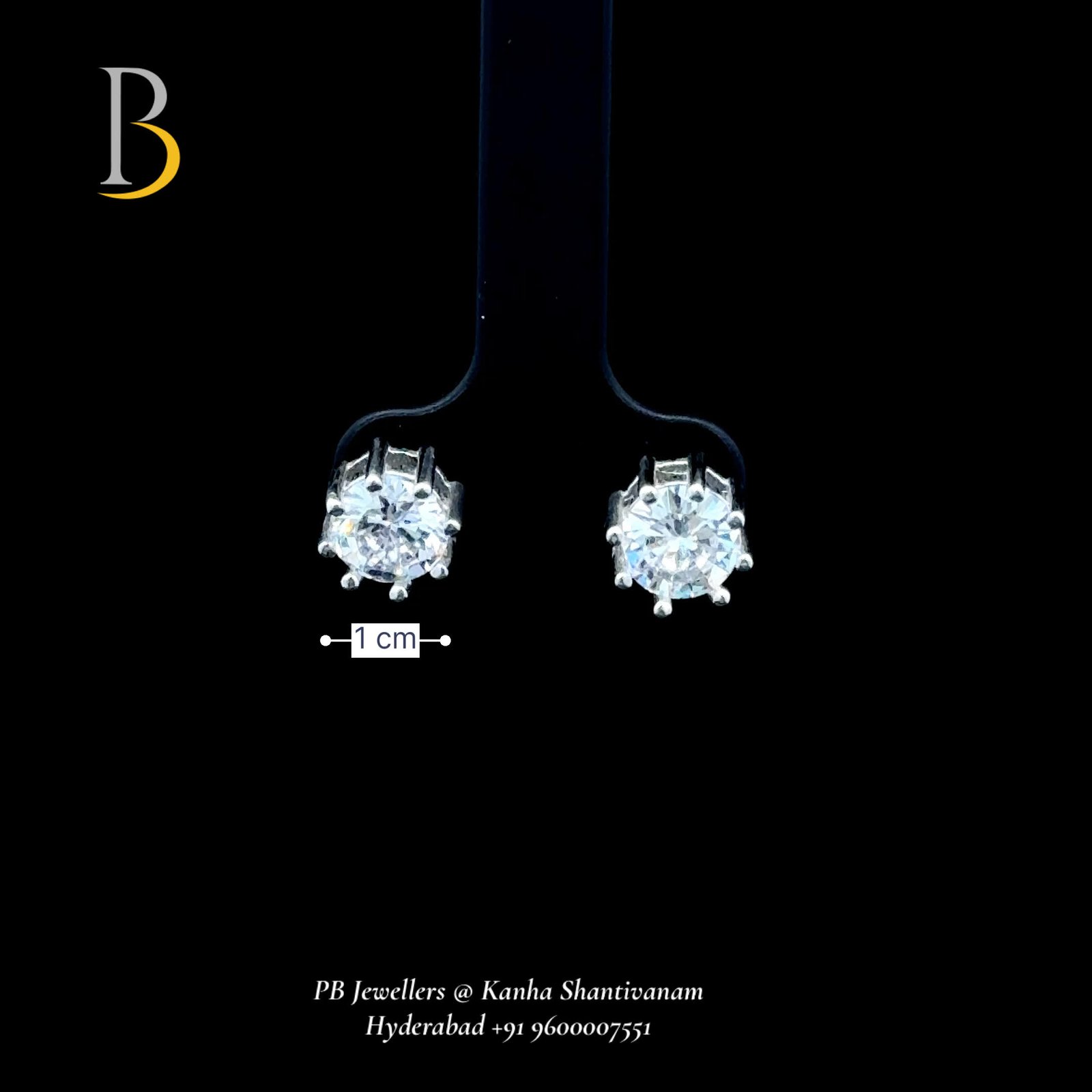 Elegant 92.5 sterling silver stud earrings featuring sparkling cubic zirconia stones. Designed for timeless appeal, these classic studs offer diamond-like brilliance, making them perfect for everyday elegance, office wear, or minimal festive styling.