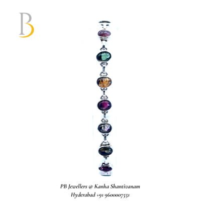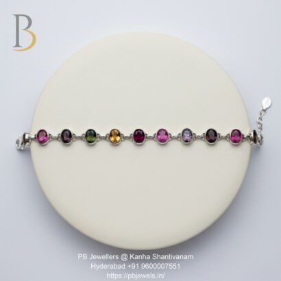 Add a burst of color and elegance to your jewelry collection with this handcrafted multicolor tourmaline gemstone bracelet. Set in 92.5 sterling silver, this elegant link bracelet features oval-cut cabochon tourmalines in a spectrum of rich hues – from deep green to vibrant pinks and warm ambers. Perfect for everyday sophistication or special occasions, this bracelet offers both charm and metaphysical benefits, making it an ideal gift for her.