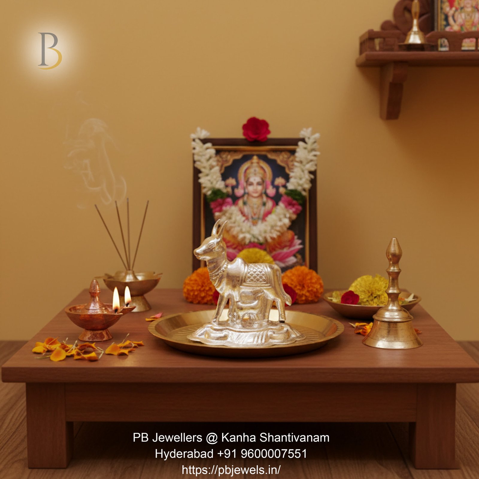This finely crafted 92.5 sterling silver Kamdhenu cow idol represents abundance, purity, and divine grace. With intricate detailing and a radiant finish, it is ideal for home temples, pooja rooms, gifting on auspicious occasions, or as a spiritual décor piece that invites peace and prosperity into your space.